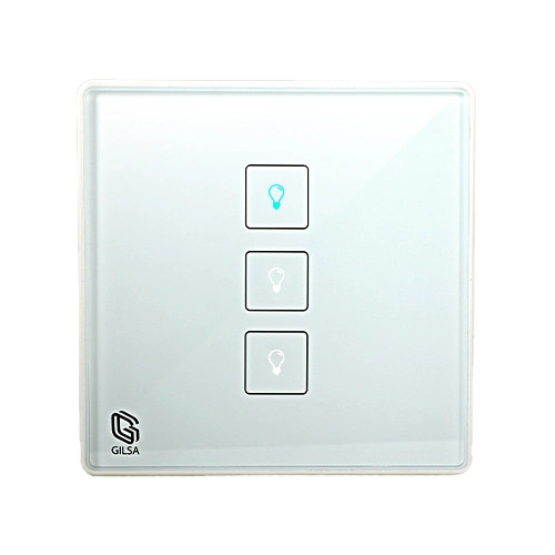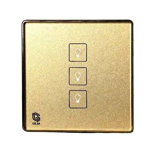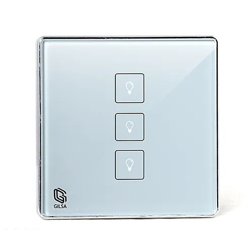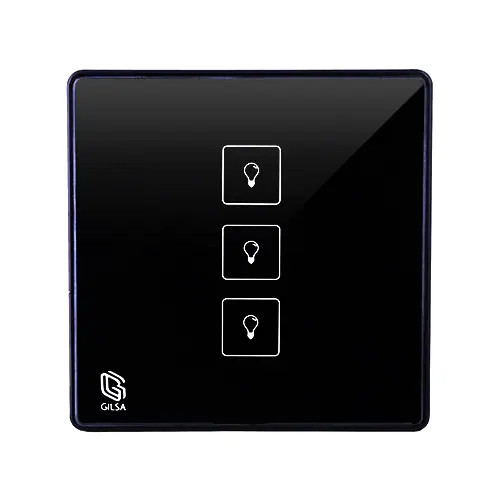 کلید روشنایی سه پل ، لمسی ، در ۳ مدل ساده، هوشمند (کنترل با اپلیکیشن) و ریموت دار رنگبندی متنوع در کنار رنگ های اصلی در فریم و رویه (دو جنس پلکسی و شیشه ای) فریم همرنگ بدنه در کلید لمسی سه پل ارزان و اقتصادی گیلسا مدل Eco