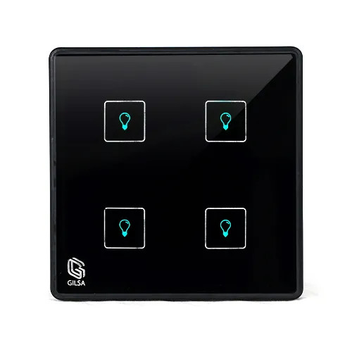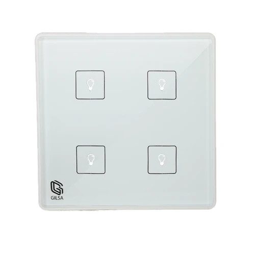 کلید ۴ پل ، لمسی ، در ۳ مدل ساده، هوشمند (کنترل با اپلیکیشن) و ریموت دار رنگبندی متنوع در کنار رنگ های اصلی در فریم و رویه (دو جنس پلکسی و شیشه ای) رنگ فریم و بدنه بصورت یکسان در مدل Eco