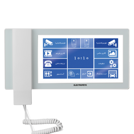 گوشی تصویری مدل ۱۱۹۸، دارای صفحهنمایش ۱۰ اینچ تمام لمسی از نوع خازنی است. بر روی صفحه¬ی نمایش محصول از پلکسی ضد خش استفاده شده است. در قسمت سمت چپ محصول نیز دسته گوشی بهمنظور برقراری ارتباط صوتی تعبیهشده است که پس از پایان مکالمه با مراجعهکننده با قرار دادن دسته گوشی، ارتباط صوتی و تصویر بهصورت مغناطیسی قطع میگردد. در کنار گوشی، محل تعبیه کارت حافظه قرارگرفته است که عکس و فیلمهای ذخیرهشده ( تا ظرفیت ۱۲۸ گیگابایت ) را در خود ذخیره میکند و هر زمان که کاربر نیاز به بازبینی آنها داشت از طریق گزینههای داخل منو قابلدسترسی خواهد بود. در قسمت رابط کاربری از طریق منوی تنظیمات گرافیکی میتوان تنظیمات مختلفی اعم از مشاهده تصاویر و فیلمهای ذخیرهشده، فراخوانی آسانسور، انتخاب ملودی زنگ، برقراری ارتباط داخلی و غیره را انجام داد. جنس بدنه این محصول از مواد ABS ساختهشده که مقاومت بالایی را در برابر کهنگی و تغییر رنگ به آن داده است.
